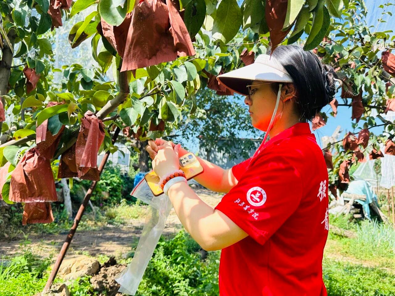 佛见喜梨进入膨果关键期,生物与资源环境学院植物医院工作坊护航“梨”香盛夏实践团在任争光、王磊老师的带领下,深入博士农场与果农家中开展样本采集,并在科技小院开设“田间村课”,通过微生物菌剂应用推动梨园绿色防控升级,为乡村振兴注入科技动能。青年学子在服务“三农”中锤炼本领,更在泥土与汗水中收获了成长的“丰收”。