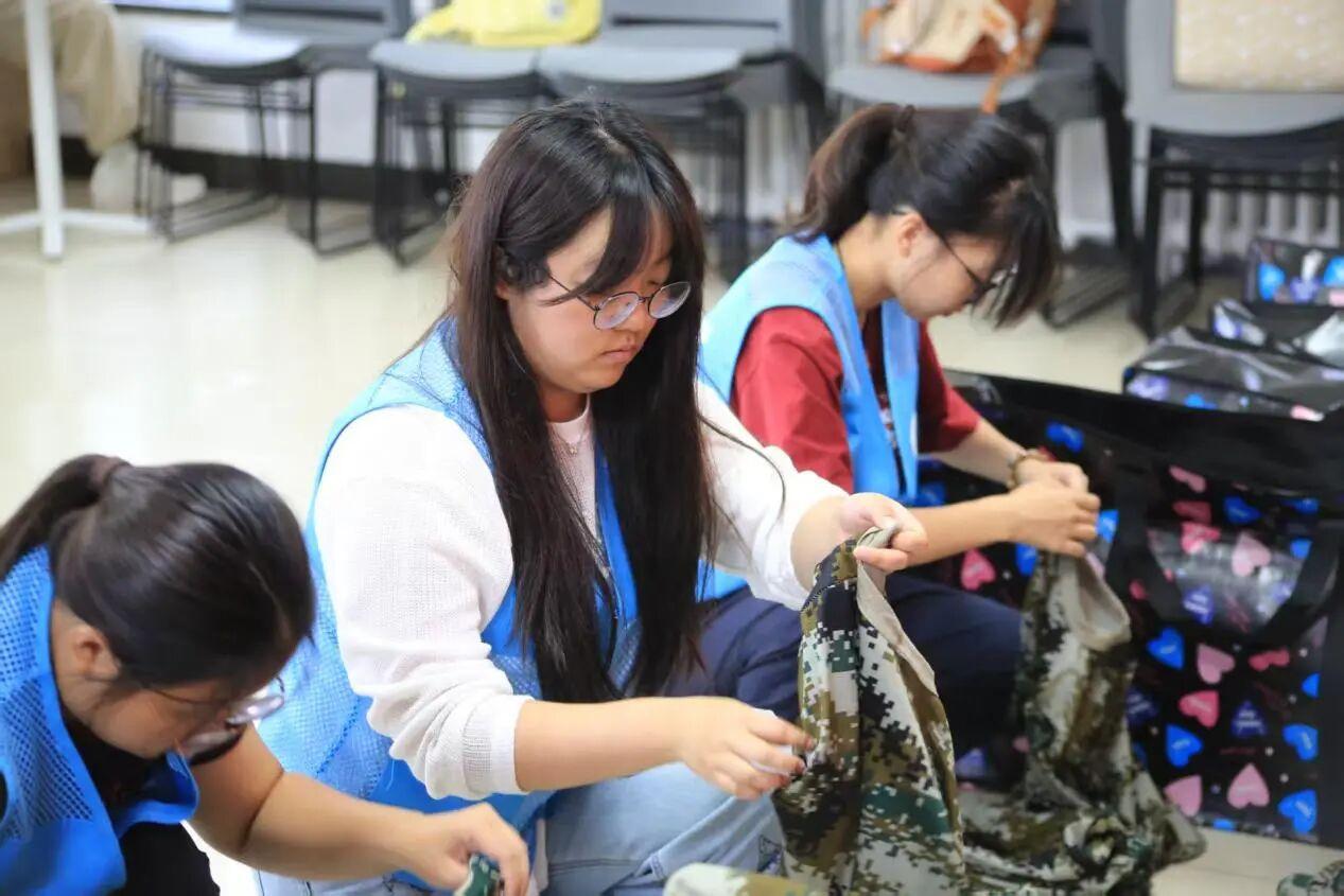 “军训服何去何从?是搁置蒙尘,还是丢弃成废?”面对这一问题,志愿者们用实践给出答案。活动期间,志愿者分散在各宿舍区设立捐赠点,麻利地对新生捐赠的迷彩服进行分拣、折叠、打包。他们的目标明确——让承载着新生记忆的迷彩服,通过公益渠道捐赠给贫困地区,既避免资源浪费,又让“橄榄绿”跨越山海续写帮扶情谊。