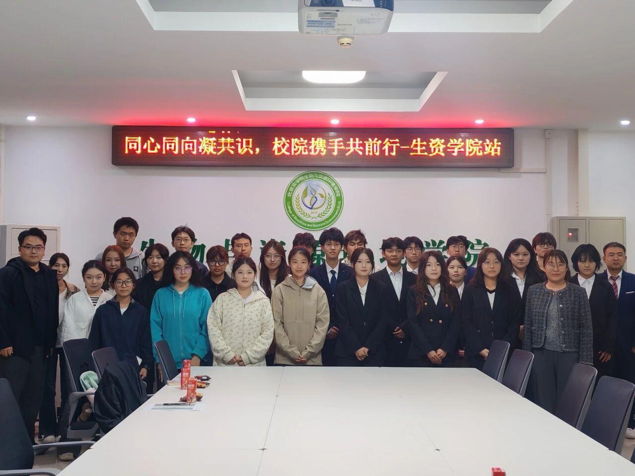 为深化校院两级学生会组织联动,凝聚工作共识,共谋合作新契机,10月16日晚,以“同心同向凝共识 校院携手共前行”为主题的校院学生会交流会(生资学院站),在生资楼B216会议室成功举行。校学生会指导教师瞿少白、生资学院学生会指导教师申维维、校学生会主席团及各部门代表、生资学院学生会主席团及各部门代表参会,围绕校院学生工作展开深入交流,共商发展方向。会议由校学生会主席团成员唐艺主持。