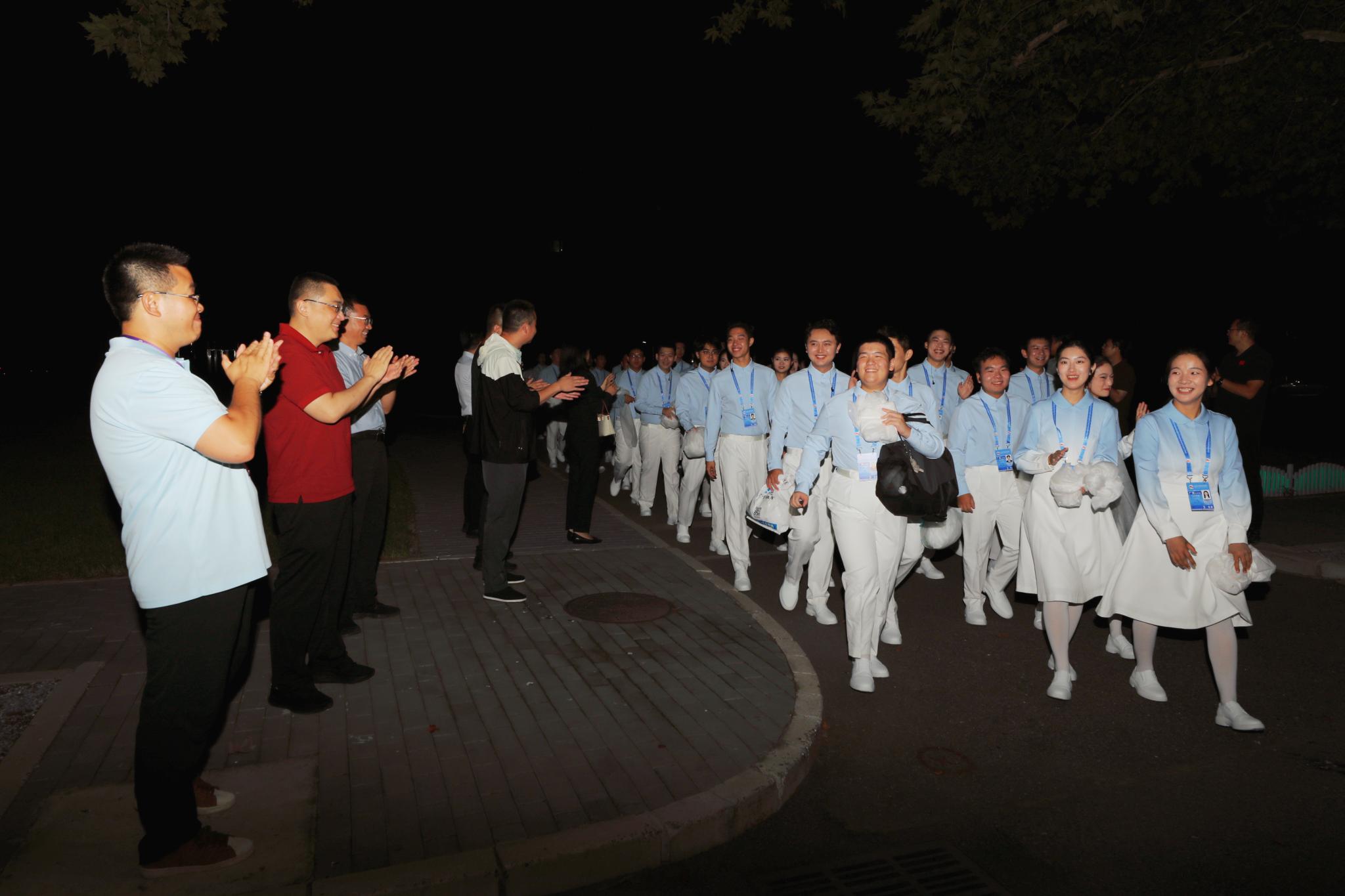 作为落实立德树人根本任务的重要契机和鲜活的爱国主义大思政课,党委书记和校长亲自在慰问和誓师大会等讲授爱国主义大思政课,将思政教育融入训练全过程。临时团支部通过主题团日和专题学习深入开展7次理想信念教育,引导学生在服务国家重大活动中厚植家国情怀、砥砺意志品质,实现了“美育+思政”的有机统一。出征誓师大会上,11人提交入党申请,2人申请入团,8人光荣入团,充分体现了党建带团建的成效。