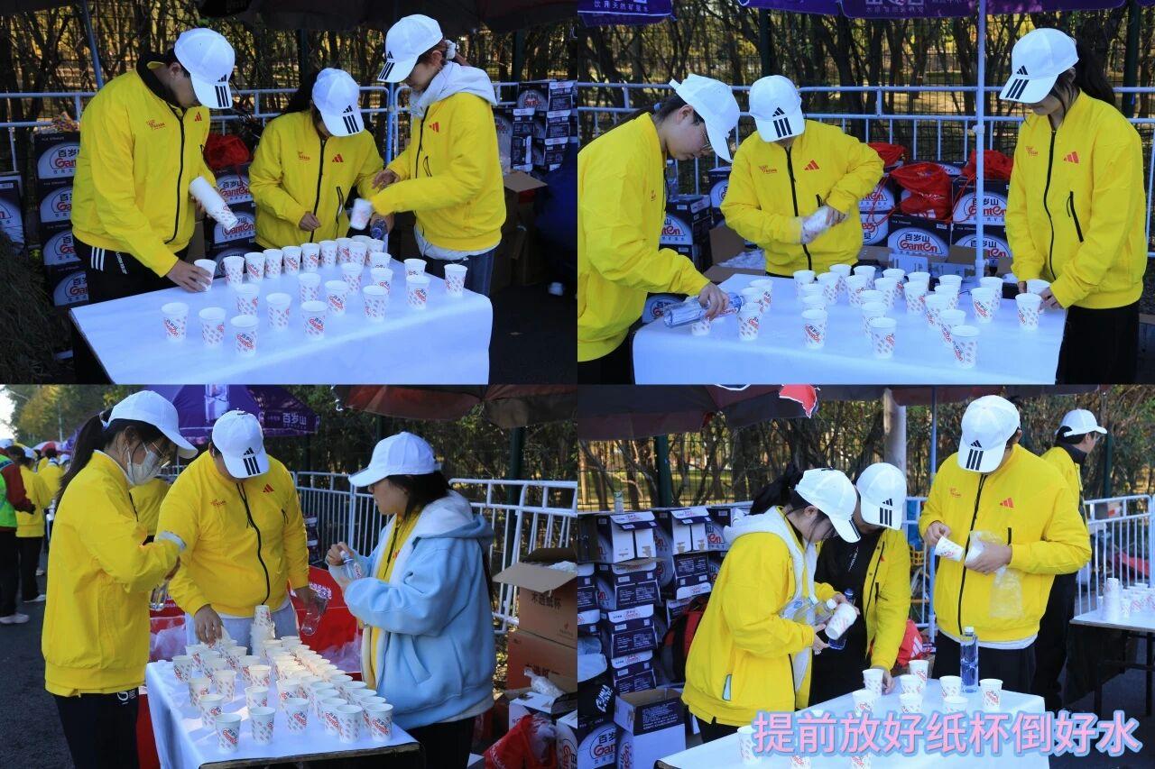 在9:30至14:00的服务高峰时段,面对如潮涌般的参赛选手,团队以“零失误”标准完成3.2万人次的饮水补给。志愿者们不仅保持着每分钟100余杯的高效供水节奏,更时刻关注选手状态,用“请往指定区域投掷水杯”“注意脚下湿滑”“加油!终点就在前方”等暖心提示,引导选手规范投放垃圾、安全通过补给区,确保赛道全程畅通无阻。