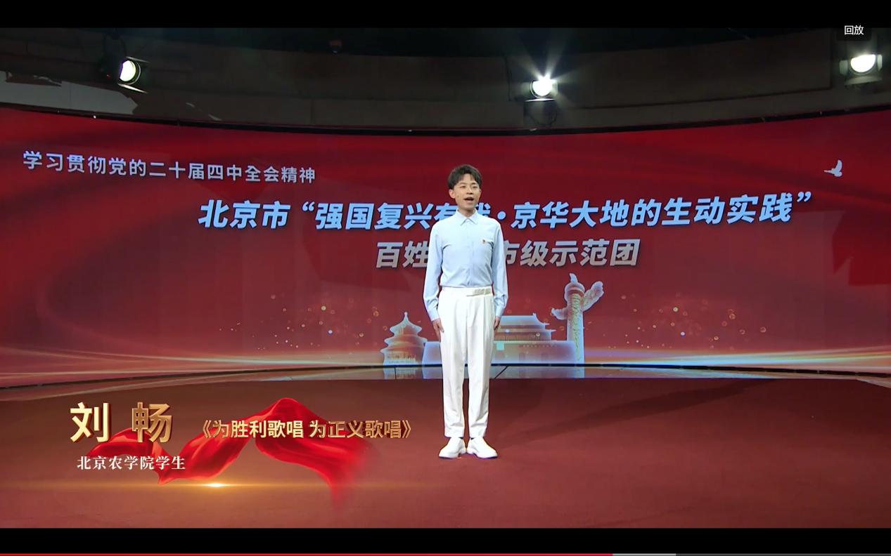 2025年12月9日14:00,由北京广播电视台《北京时间》栏目策划的“强国复兴有我·京华大地的生动实践”百姓宣讲市级示范团专场特别节目在北京广播电视台、北京市1.2万辆公交车的移动电视、楼宇电视、城市大屏、抖音、百度、快手、优酷、新浪微博、新浪新闻等多平台同步播出。我校经济管理学院2024级农林经济管理专业研究生刘畅,作为北京市百姓宣讲团成员,继跟随市宣讲团开展全市巡讲后,根据统一安排参与了《北京时间》节目的录制,他在节目中深情回顾了自己作为“九三阅兵合唱团”一员参与中国人民抗日战争暨世界反法西斯战争胜利80周年纪念活动的难忘经历,分享作为农科学子积极传承弘扬伟大抗战精神和参与到乡村振兴火热实践中的感悟。