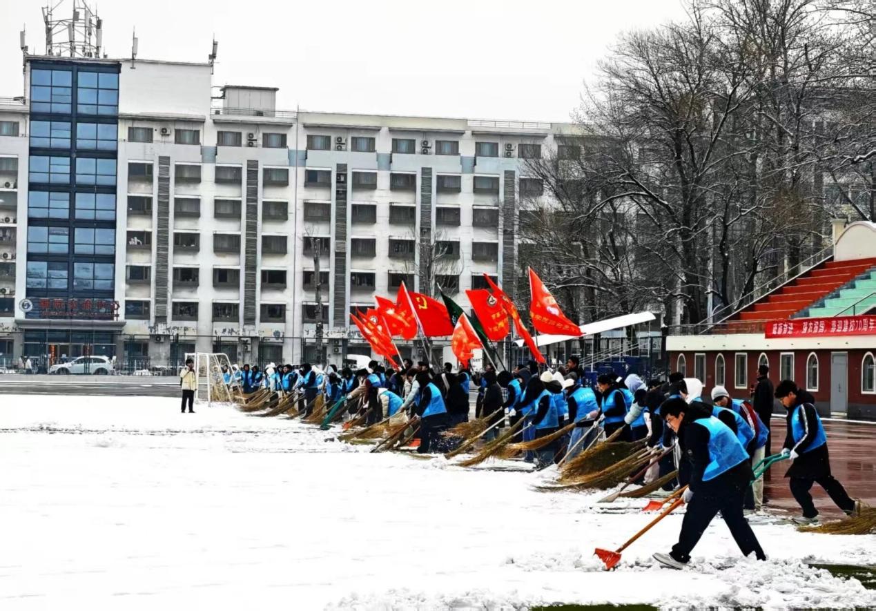 3月5日,200余名北农青年主动集结开展扫雪铲冰工作,为首都高等学校第64届学生田径运动会开幕式表演筹备筑牢安全屏障,也为建校70周年献上了一份温暖的“志愿答卷”。