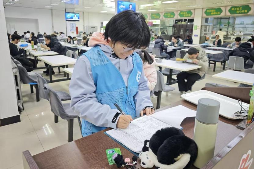 在食堂服务中,志愿者们引导同学们有序就餐、登记失物;在宿舍与教学楼周边,他们整理摆放共享单车,于细微之处践行文明,共建和谐有序的校园环境,让雷锋精神的暖流涌动在校园的每个角落。