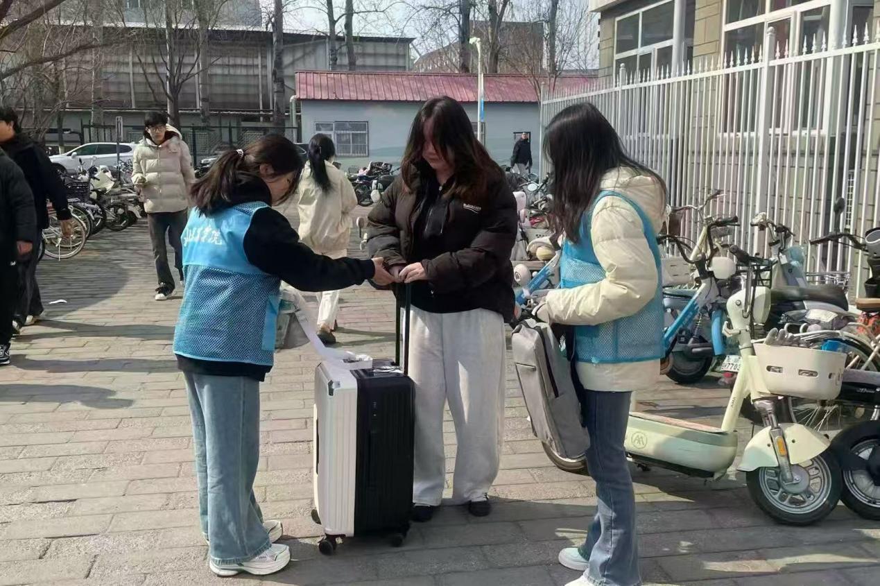 3月8日,志愿者们用热情帮助返校学生搬运行李,让友爱互助的种子在同学们踏入校门的那一刻便深深扎根。