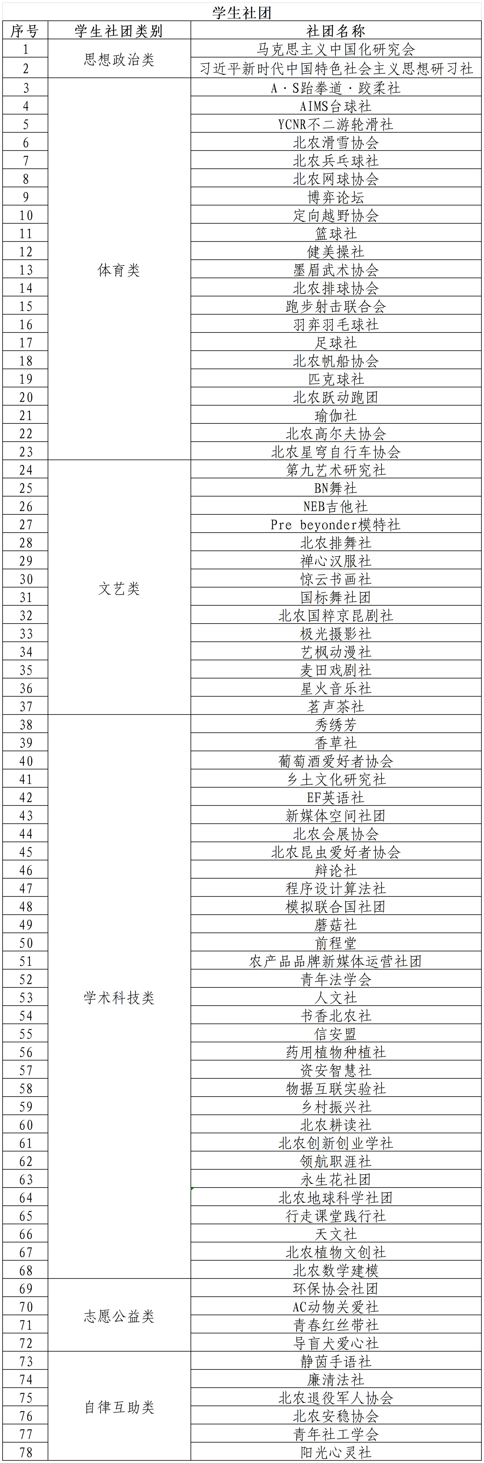 学生社团依据性质和功能,分为思想政治类、体育类、文艺类、学术科技类、志愿公益类、自律互助类六大类别,各类学生社团在各自领域发挥着独特作用,共同助力学生德智体美劳全面发展。校团委社团管理部肩负管理、指导和服务全校学生社团的重要职责,当前学校学生社团已形成“一团一品”的特色格局。